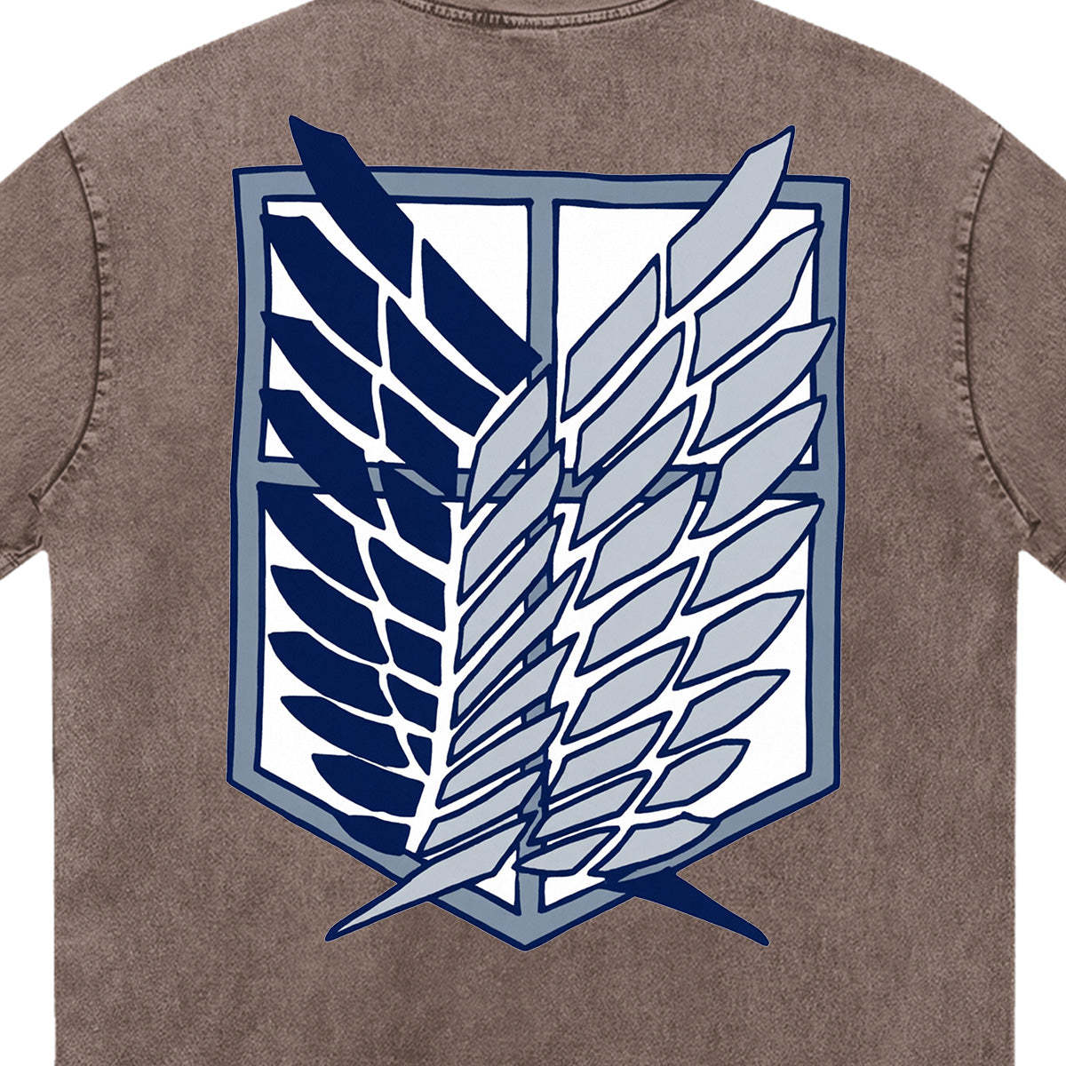 Dedicate your heart, once more. A powerful and weathered tribute to the bravest branch of the military. The front of this charcoal-washed tee features a small, minimalist version of the "Wings of Freedom" in a clean white print. The back explodes with a massive, distressed rendition of the emblem, its feathers tattered and sharp, symbolizing the heavy price of liberty. Framed by bold, industrial-style typography and the rallying cry of the Scouts, this design captures the grit, the sacrifice, and the unbreakable spirit of those who ventured beyond the walls.