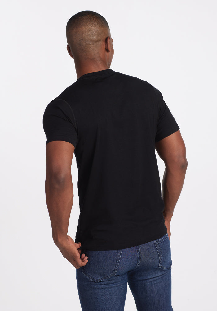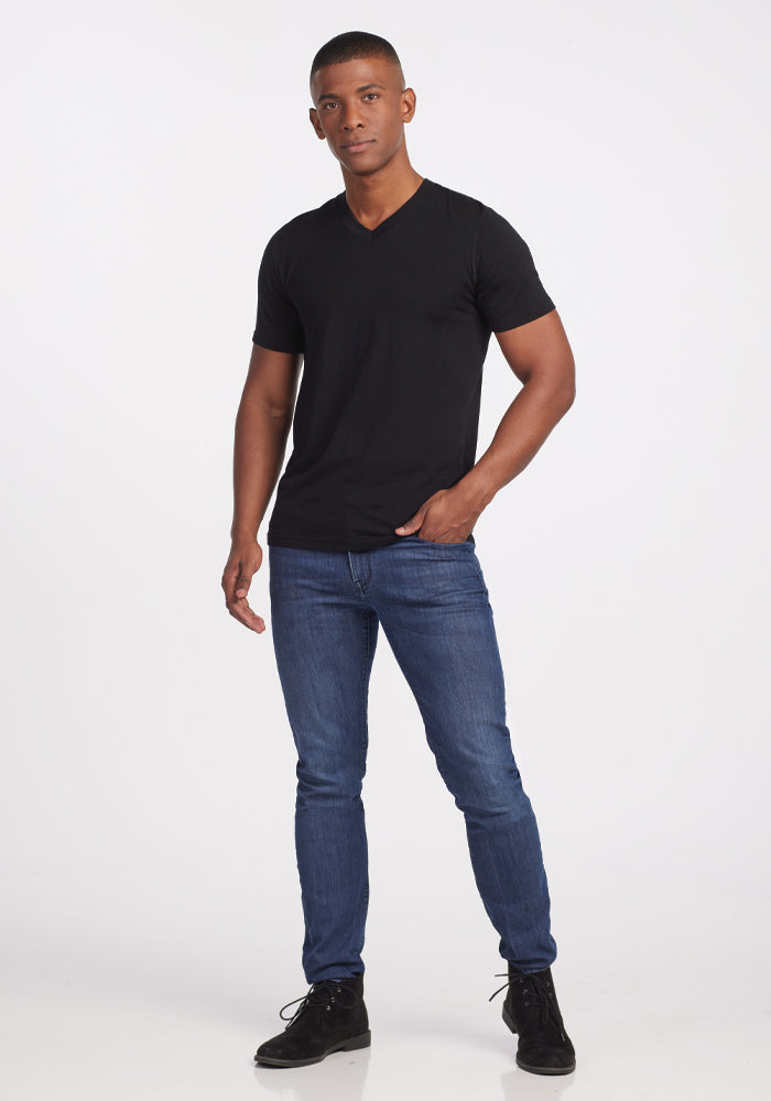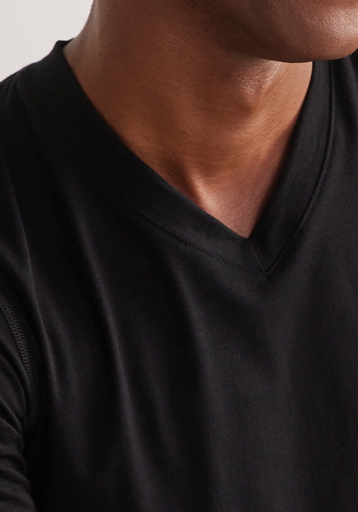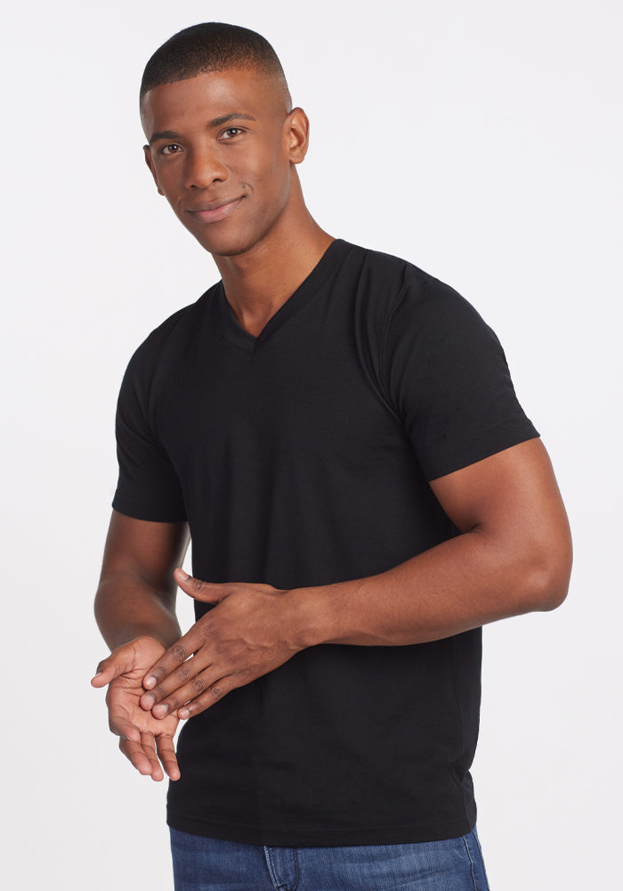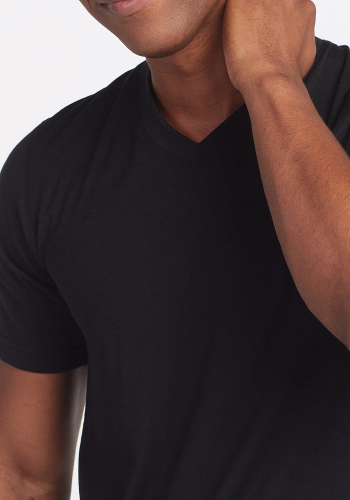 Peak performance meets classic design. This ultra-soft Black v-neck Merino tee can be worn day after day, week after week, completely odor-free.