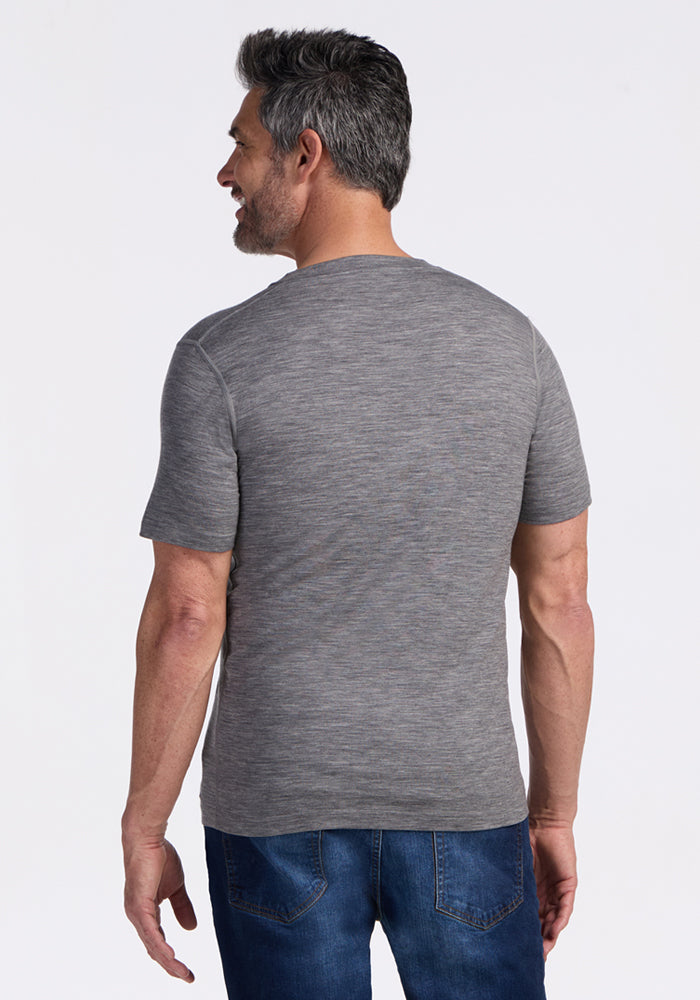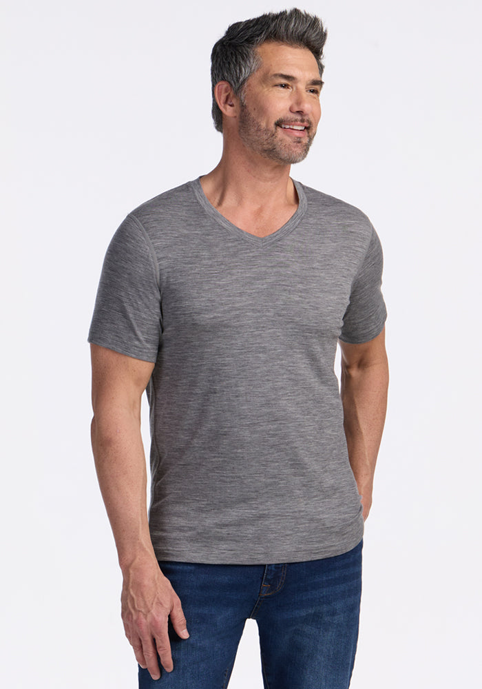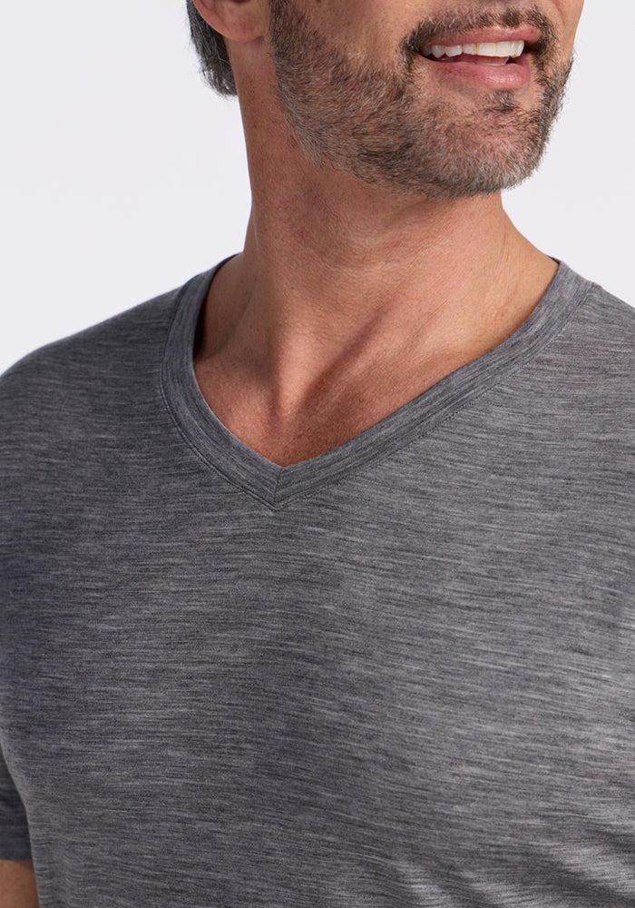 Peak performance meets classic design. This ultra-soft v-neck Merino tee can be worn day after day, week after week, completely odor-free.