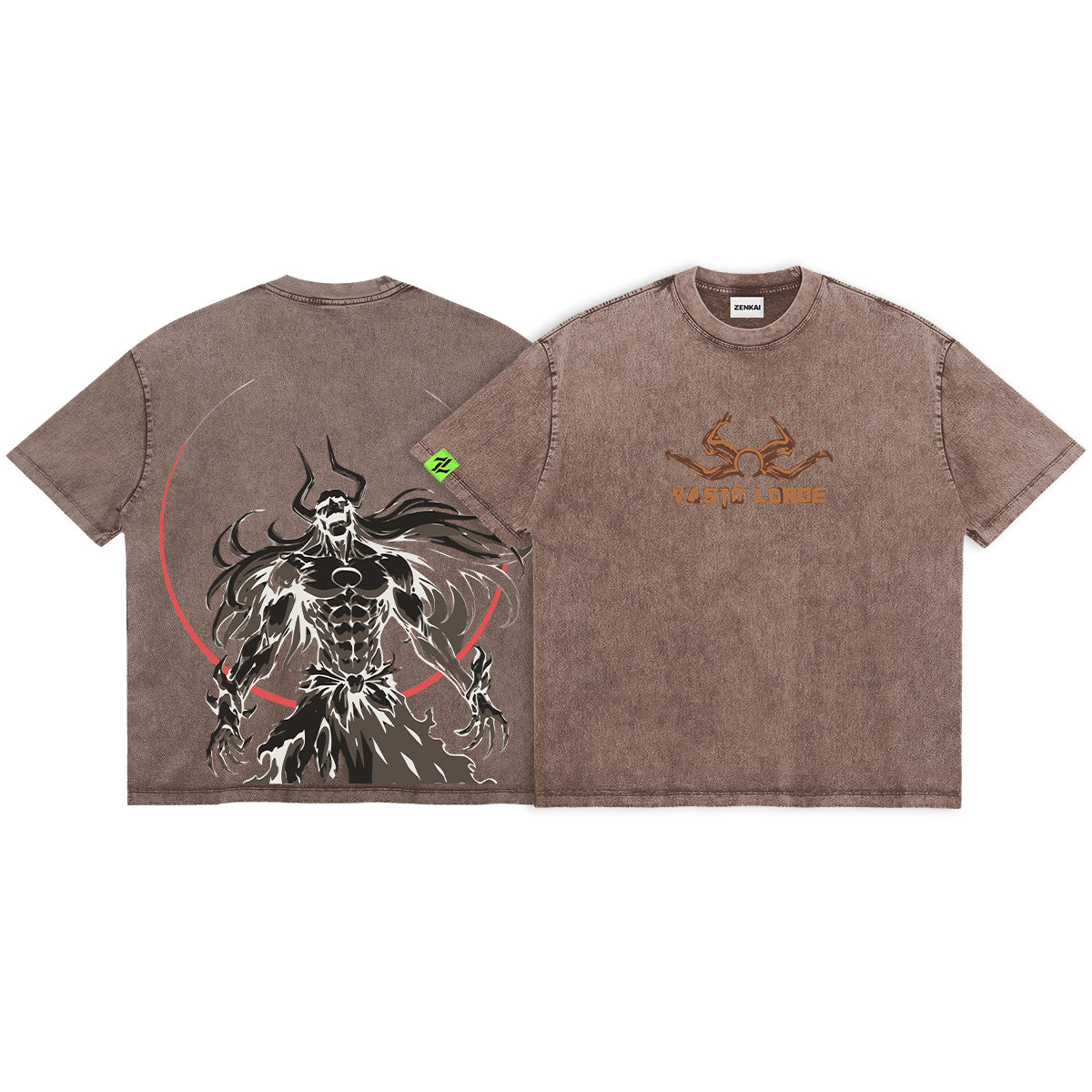 Surrender to the abyss. A dark and high-voltage tribute to Ichigo’s most uncontrollable form. The front of this charcoal-washed tee features a minimalist, rusted-orange sigil of the Vasto Lorde horns, accompanied by the bold, industrial typography "VASTO LORDE." The back reveals a cinematic masterpiece: the Vasto Lorde silhouette standing in a pool of shadow, framed by a massive, blood-red crescent moon. Rendered in a gritty, high-contrast style that emphasizes his skeletal mask and flowing mane, this design embodies the terrifying spiritual pressure and animalistic rage of a Soul Reaper pushed beyond his limits.