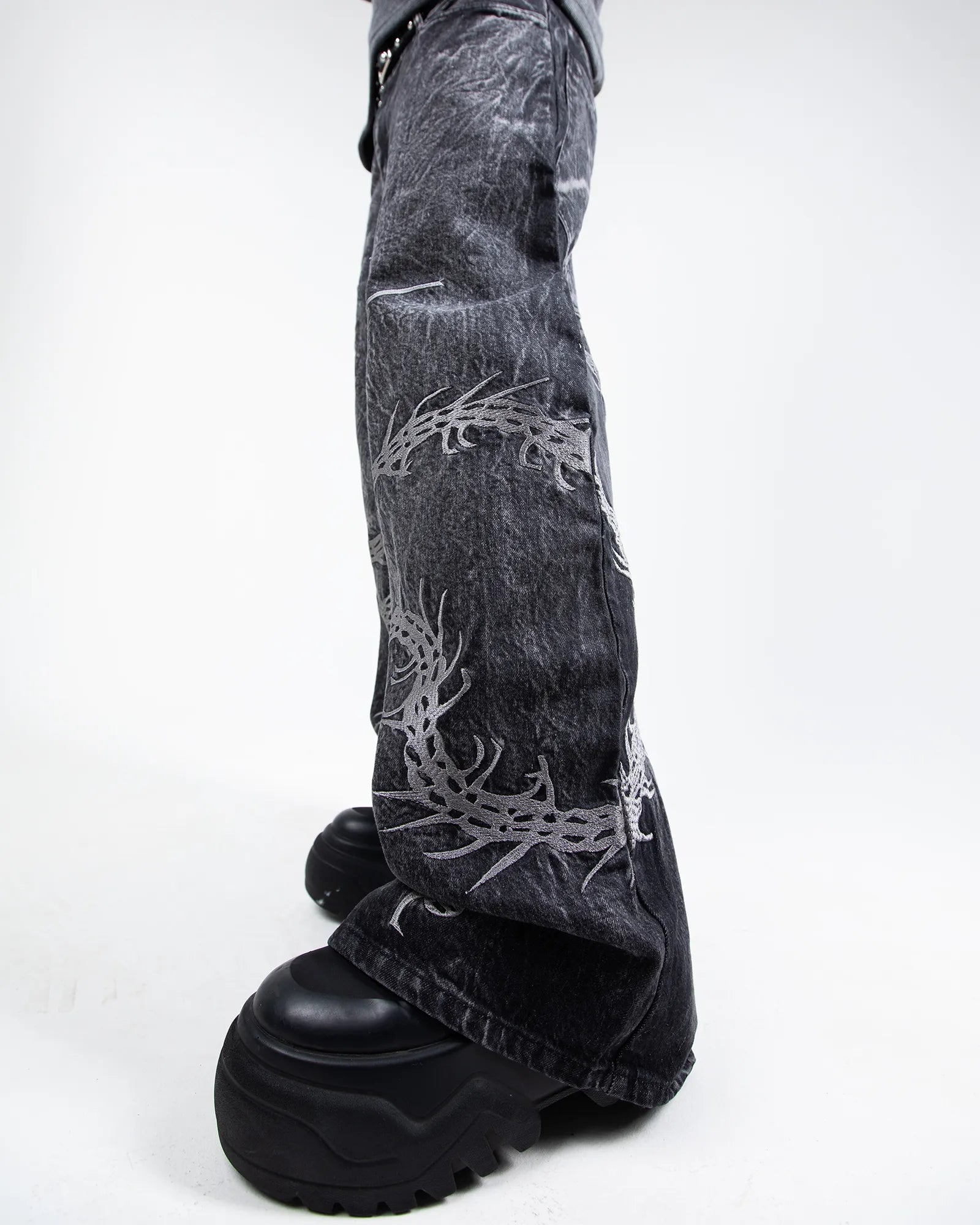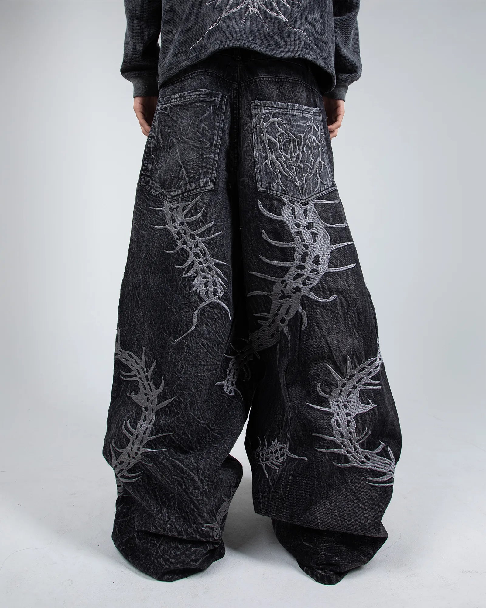 Embroidery: Front and back embroidery covering the entire leg + back pocket