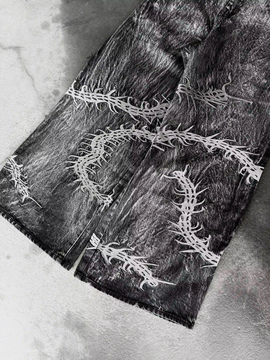 Jeans: Full leg embroidery (front & back) + back pocket logo