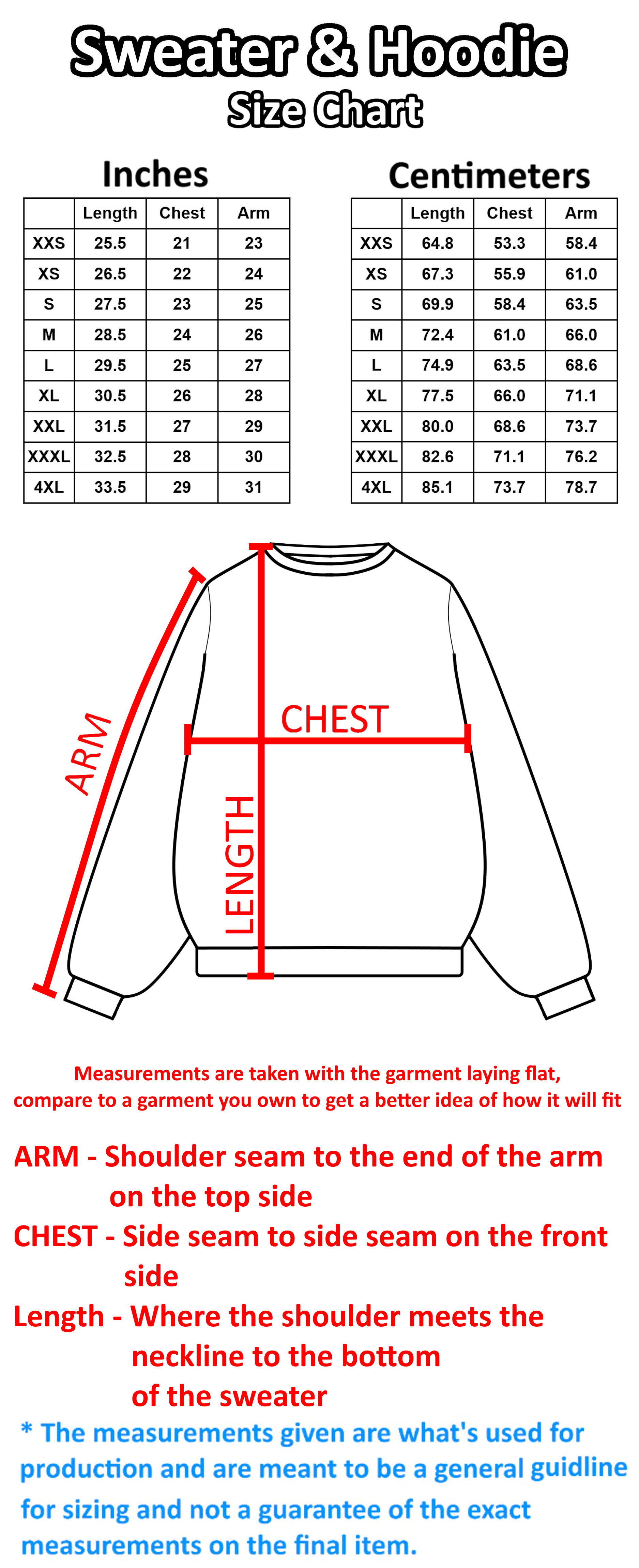 •  This guide shows different models with various body types wearing the full range of XXS through XXXL hoodies. Check it out for the best idea of how each size will fit.