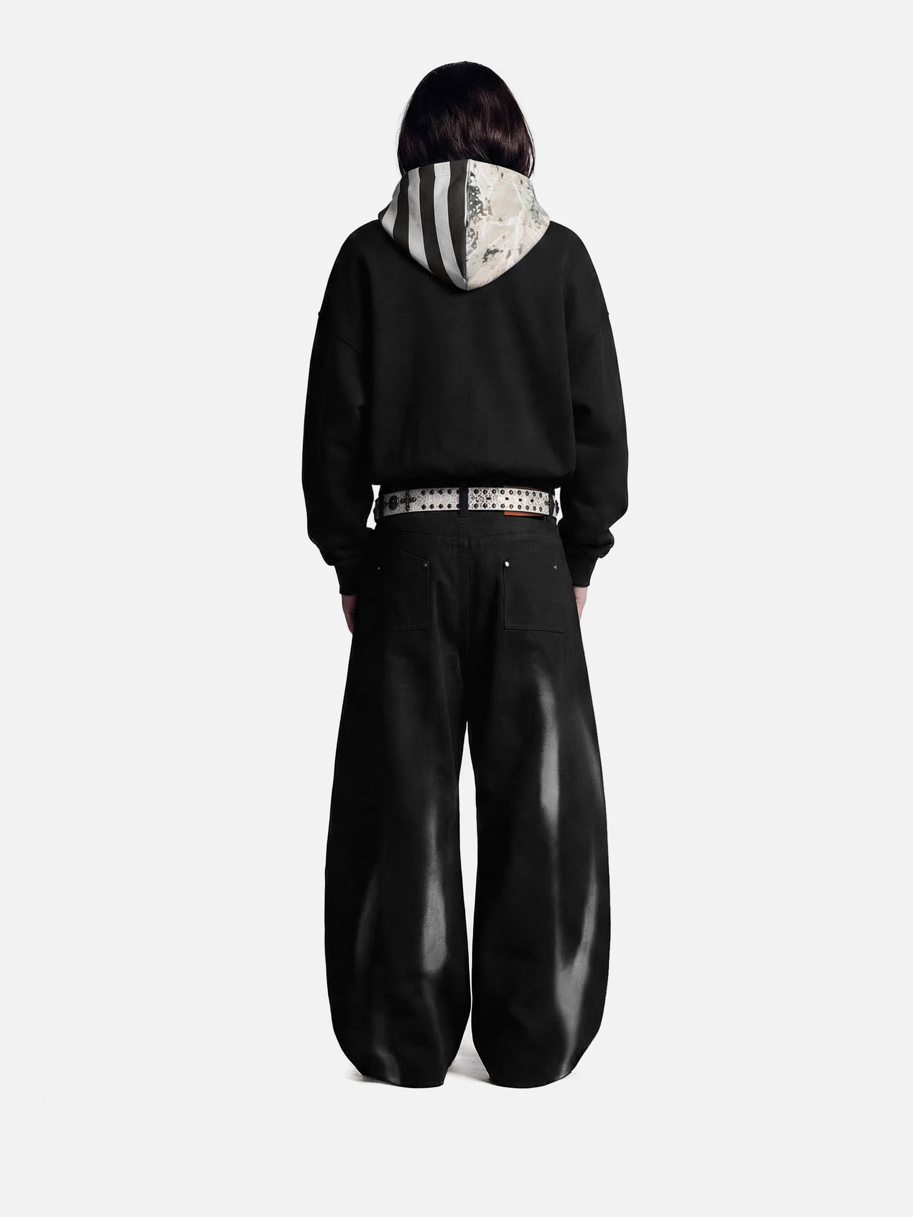 BOXY silhouette with a relaxed, oversized fit. The cropped length and structured hood create a balanced proportion, ideal for layering or wearing alone in casual urban settings.
