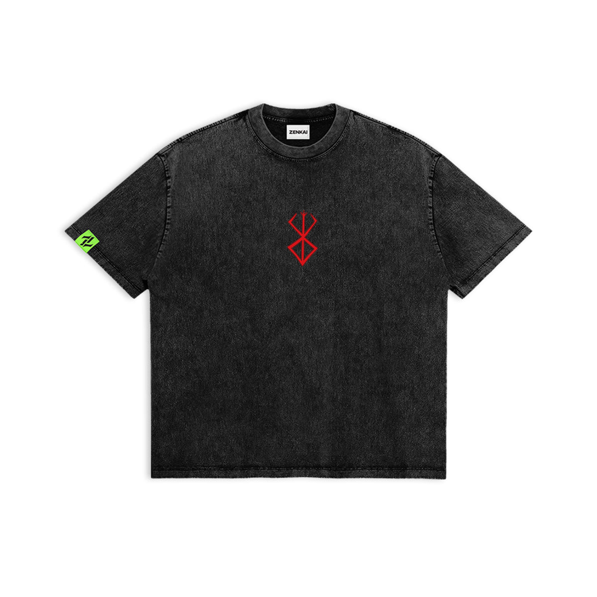 Survive. Fight. Prevail. A brutal and cutting-edge tribute to the Black Swordsman. The front of this charcoal-washed tee features a minimalist, blood-red Brand of Sacrifice positioned over the heart. The back is a symphony of jagged, sharp-edged lines forming a symmetrical tribal exoskeleton that evokes the lethal aesthetic of the Berserker Armor. Integrated into this dark geometry is a subtle, haunting profile of Guts, wreathed in white and crimson energy. This design embodies the relentless struggle against fate and the metallic coldness of a warrior who has lost everything but his rage.